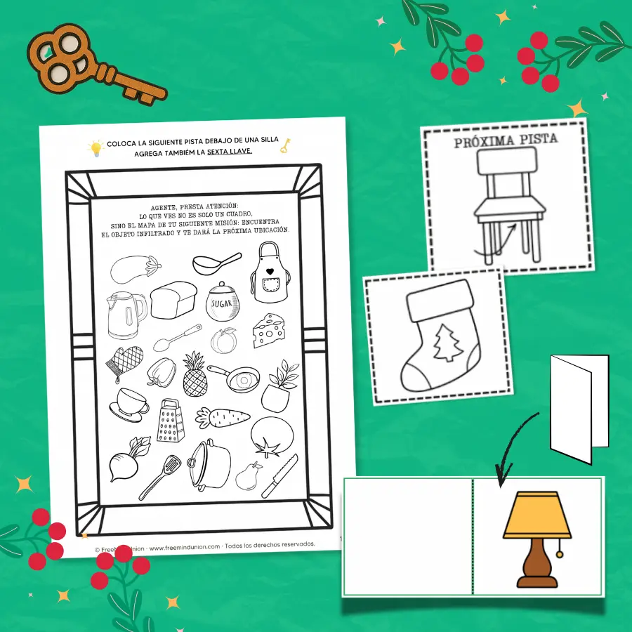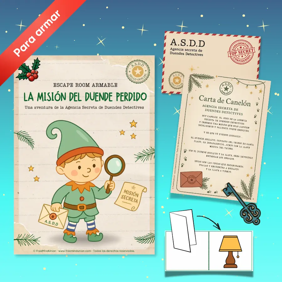šŸŽ„ Este Escape Room Armable navideƱo transforma cualquier espacio (aula, casa, club, salón) en una aventura mĆ”gica llena de pistas, desafĆ­os y creatividad. TĆŗ preparas la escena… šŸ•µā€ā™€ Ā”y los pequeƱos detectives resuelven el misterio!
